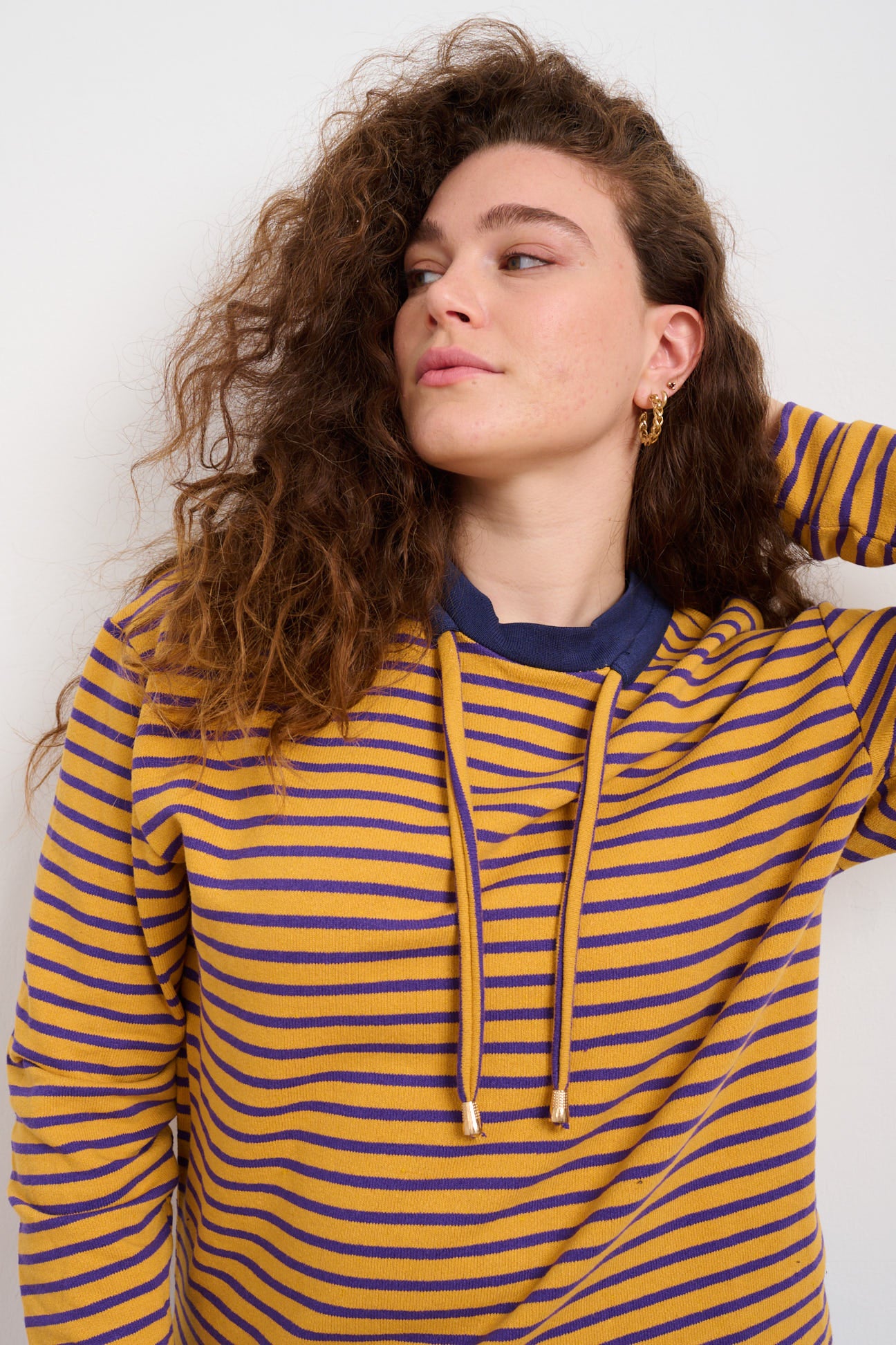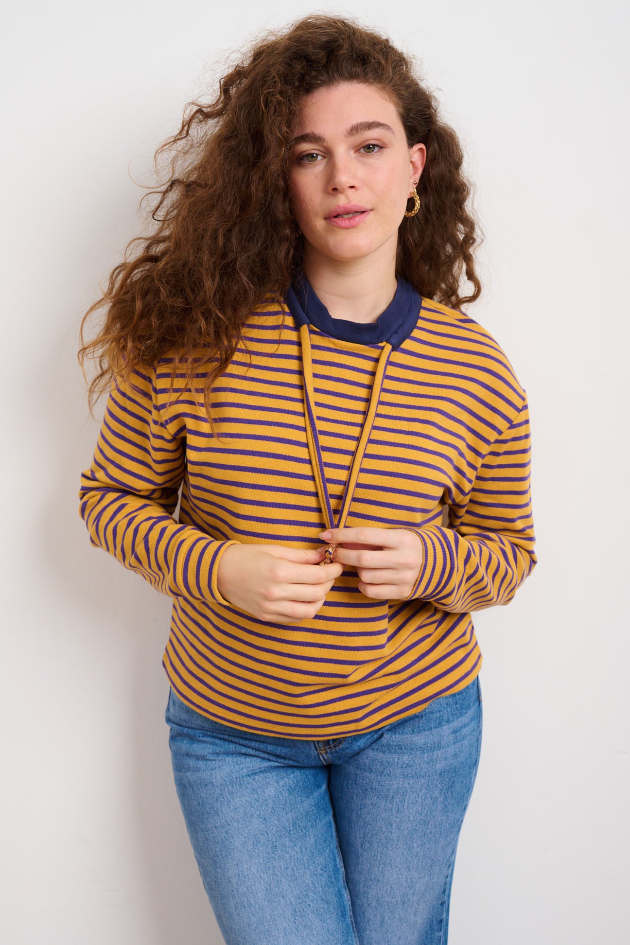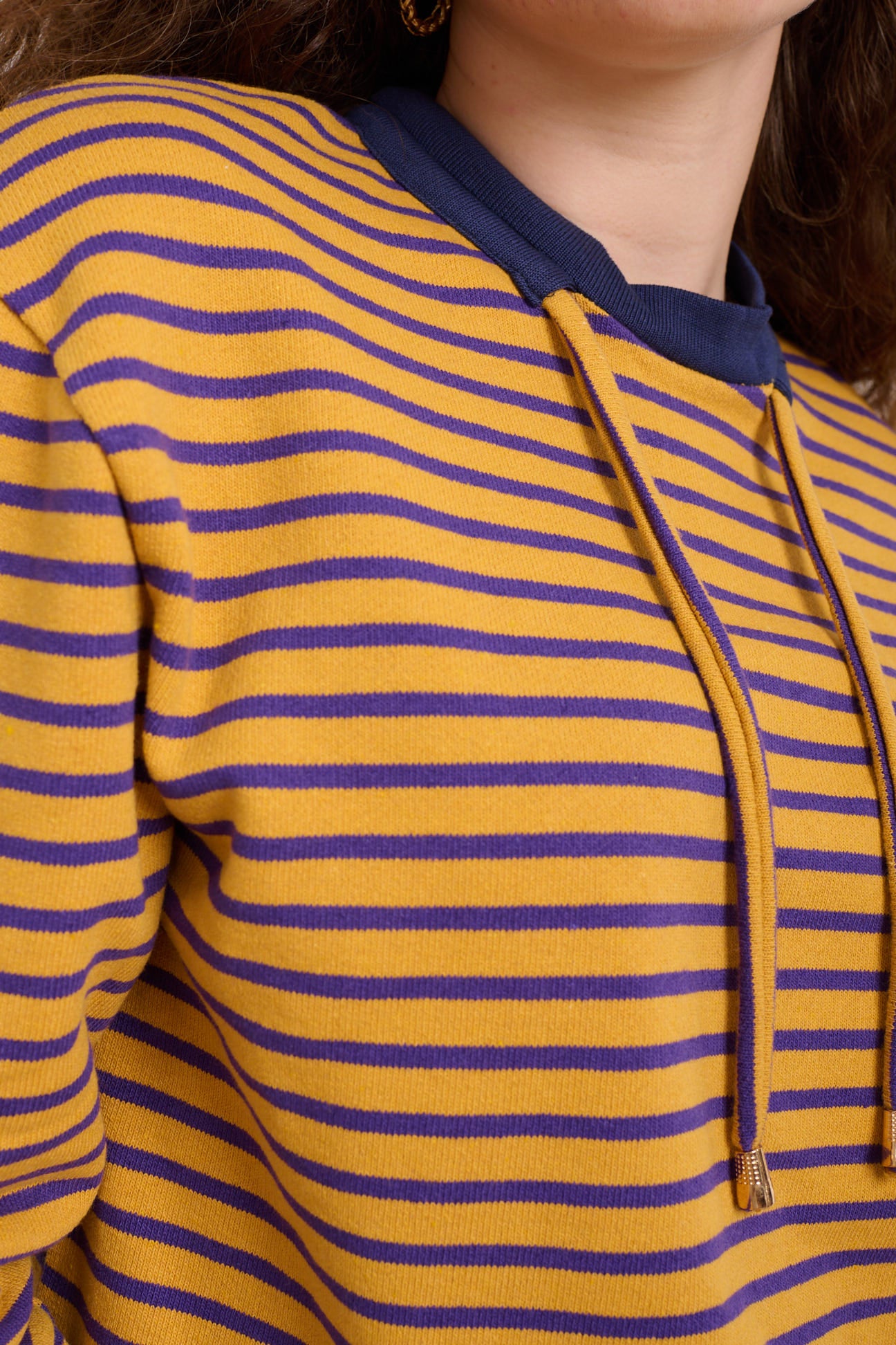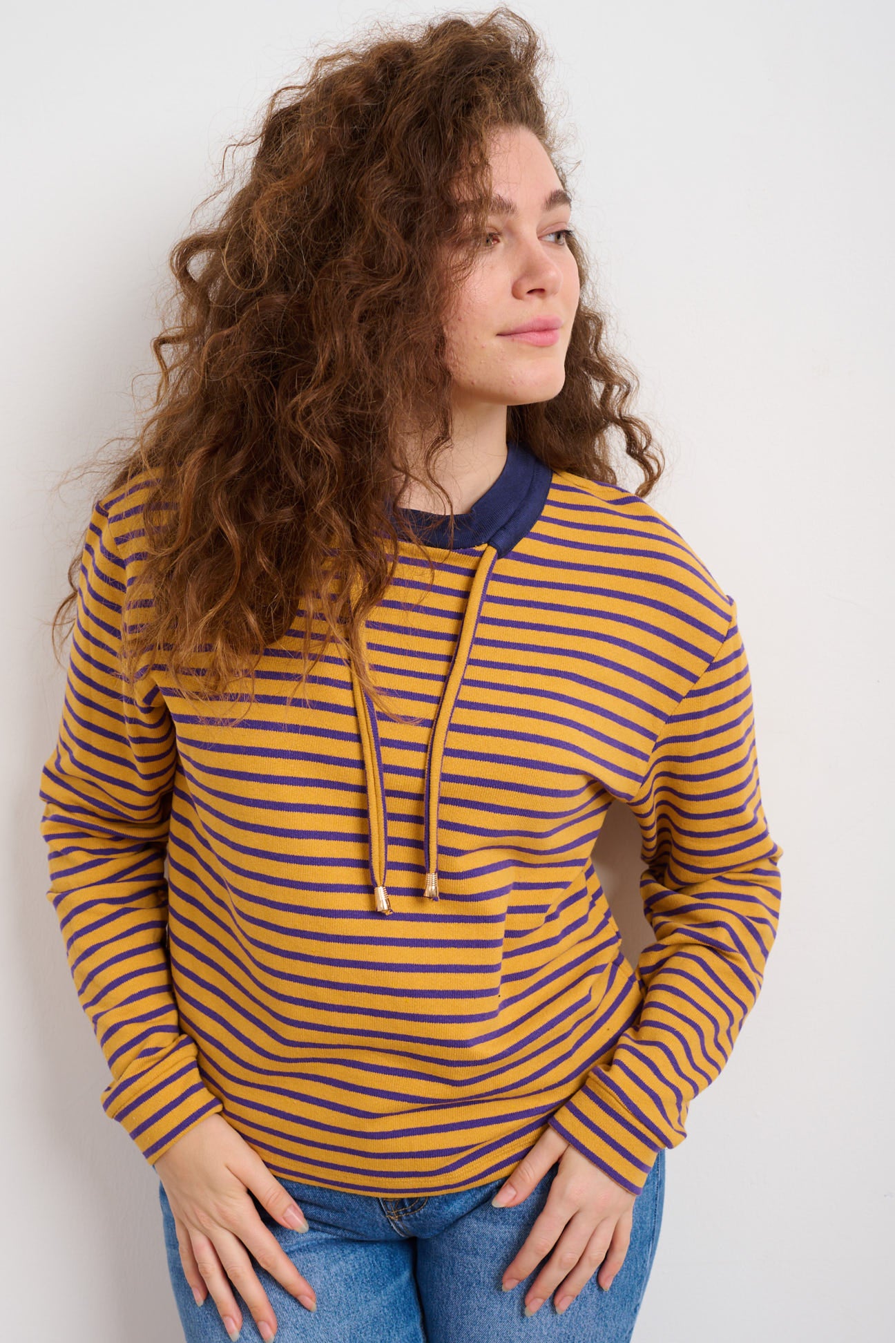 חולצת פסים חרדלית עם צוארון נייבי שמרים מצב רוח גם ביום שאת פחות...