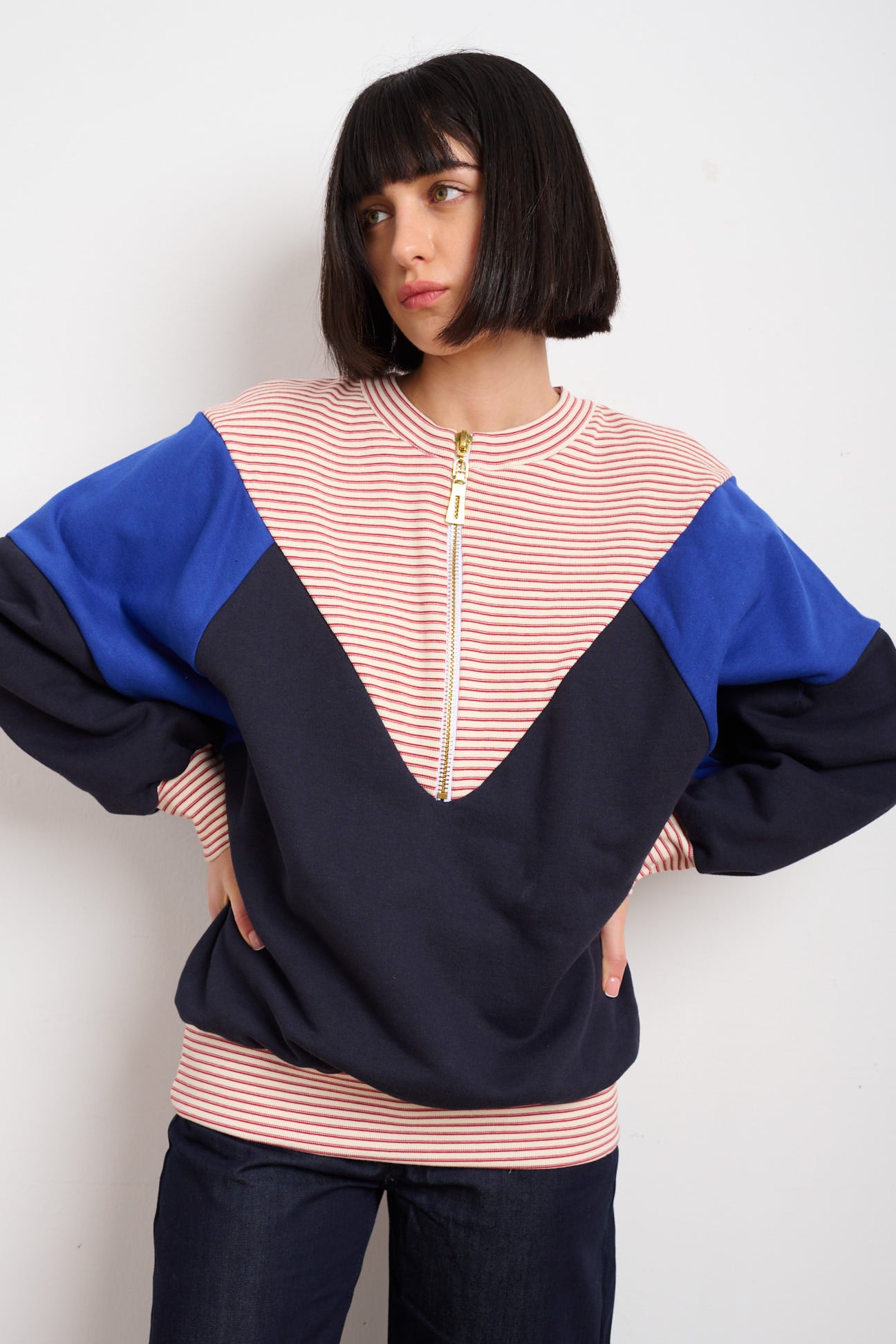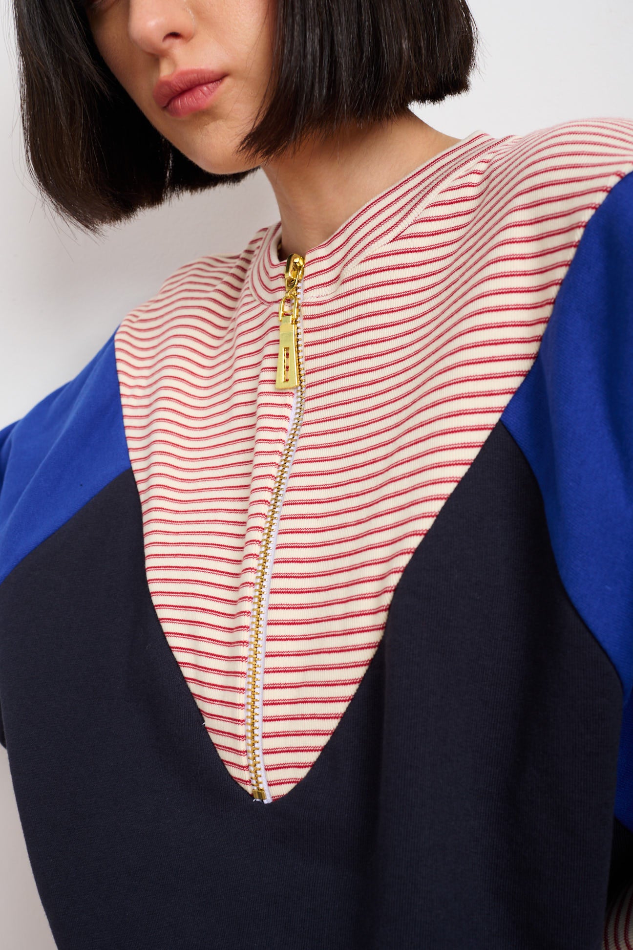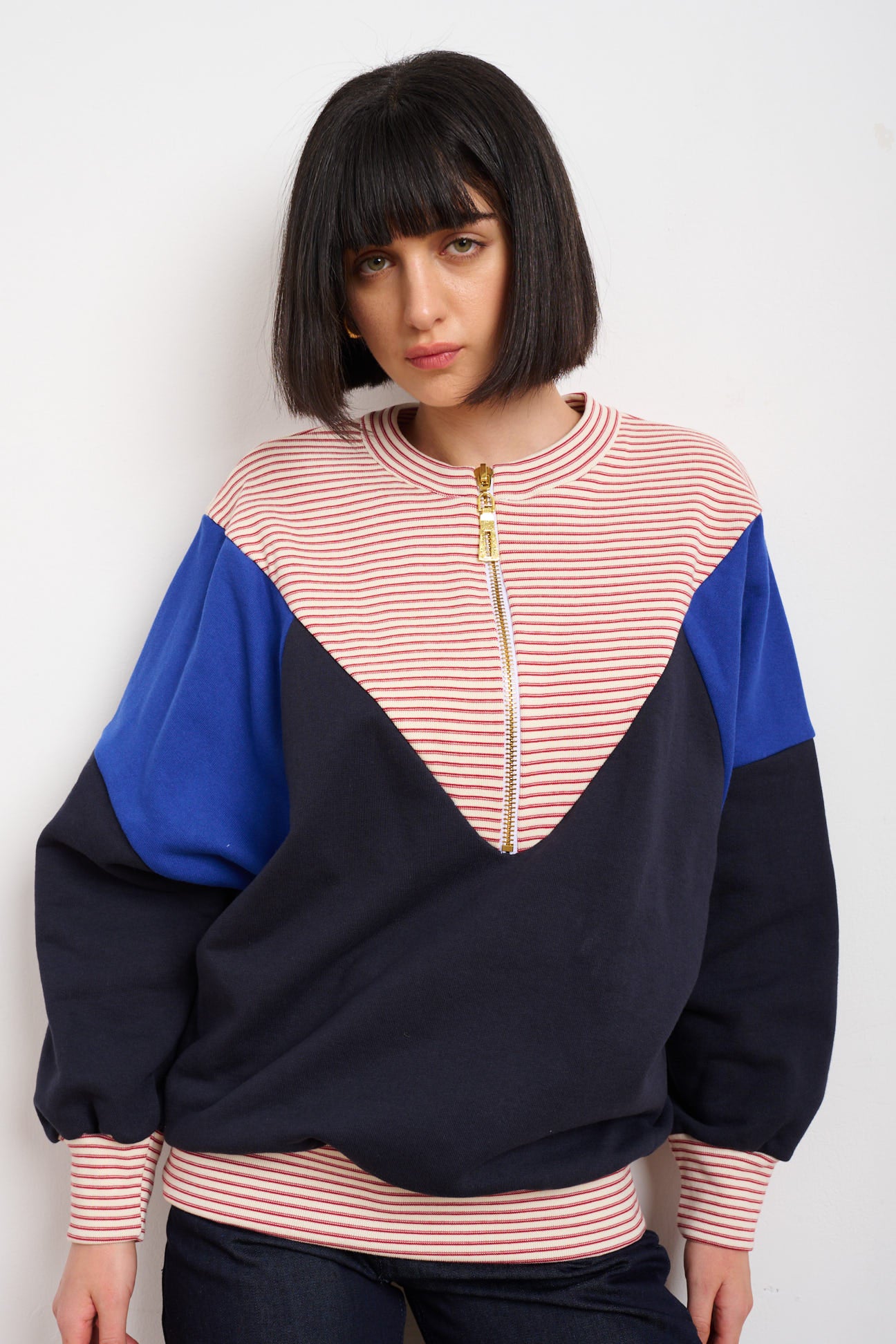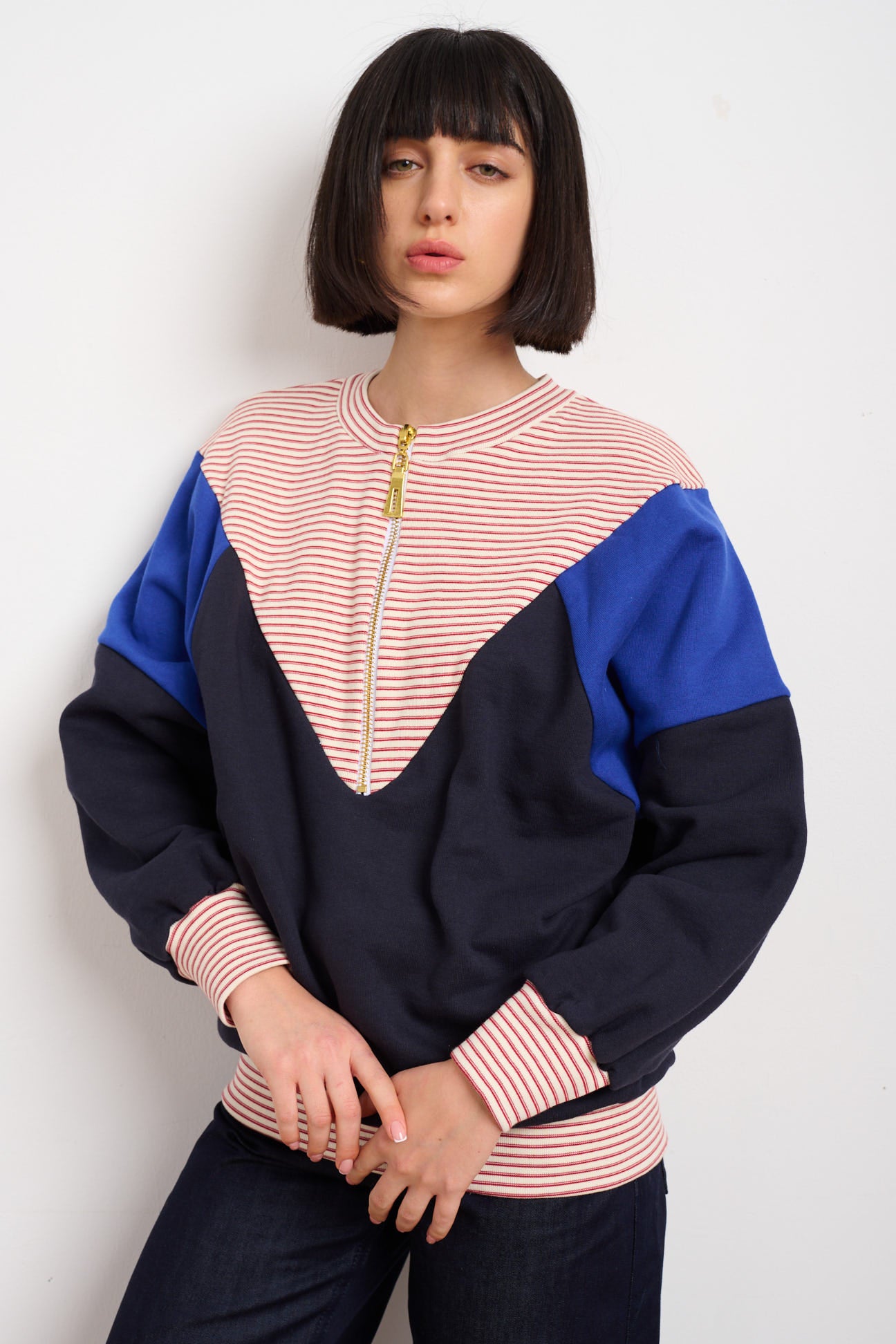כשסטייל ונוחות נפגשים – מקבלים סווטשירט פוטר בצבעי אדום, כחול ונייבי שמרים את מצב הרוח ברגע.