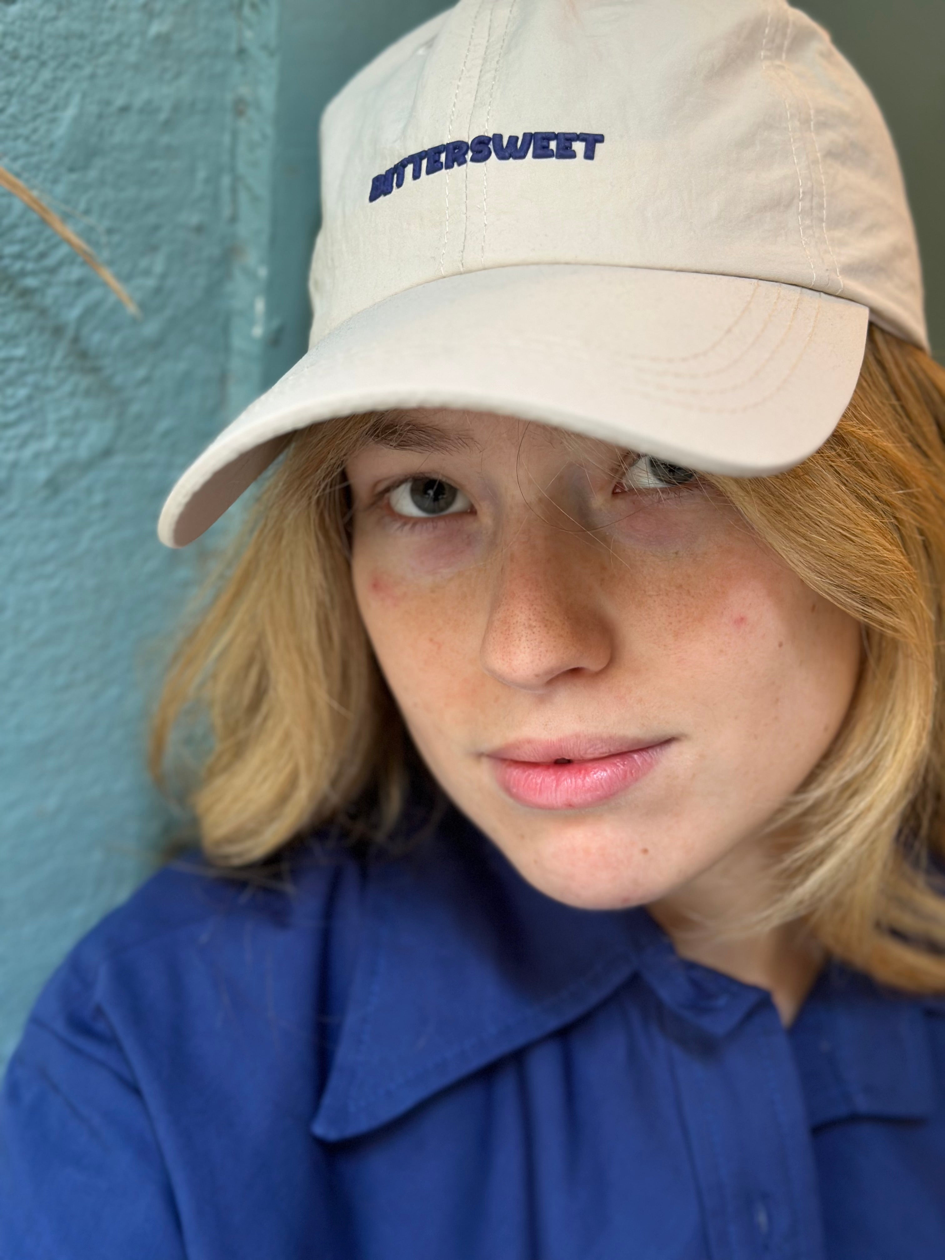 כובע בג׳ מתכוונן, עם רקמה בצבע כחול כהה