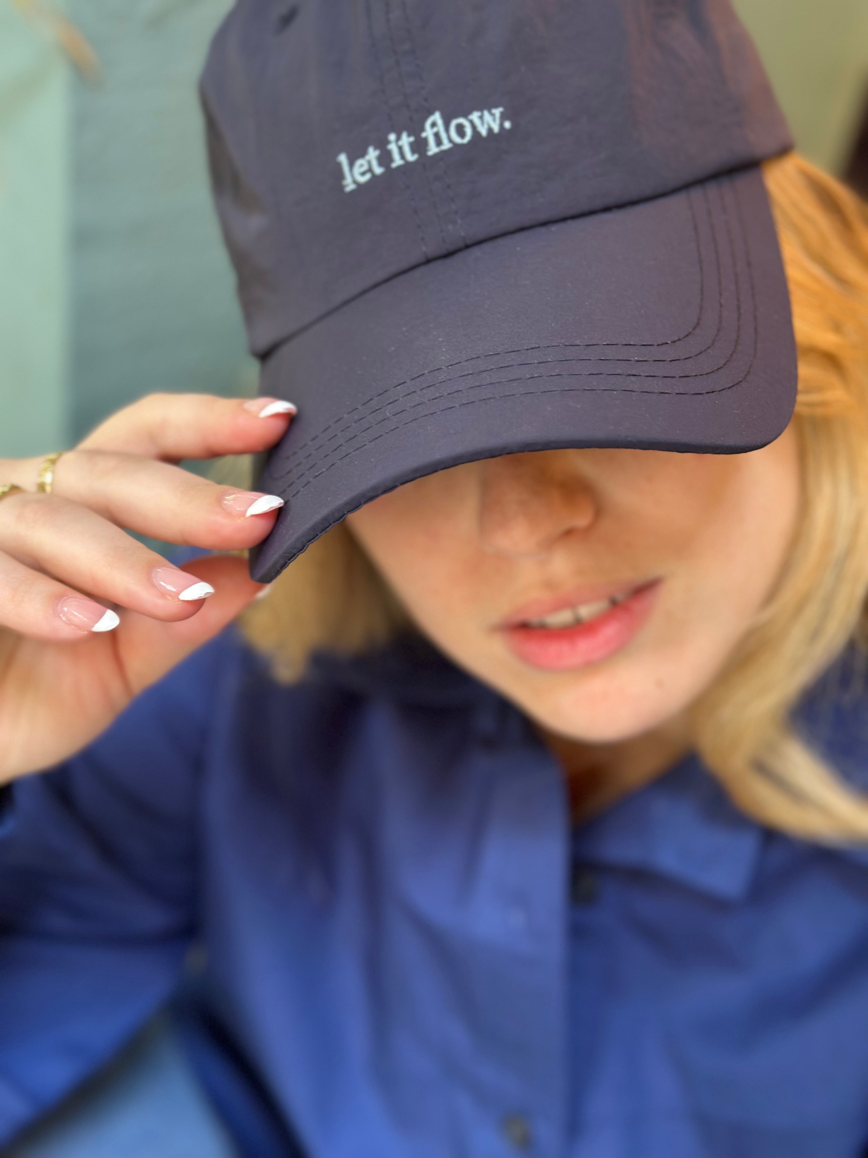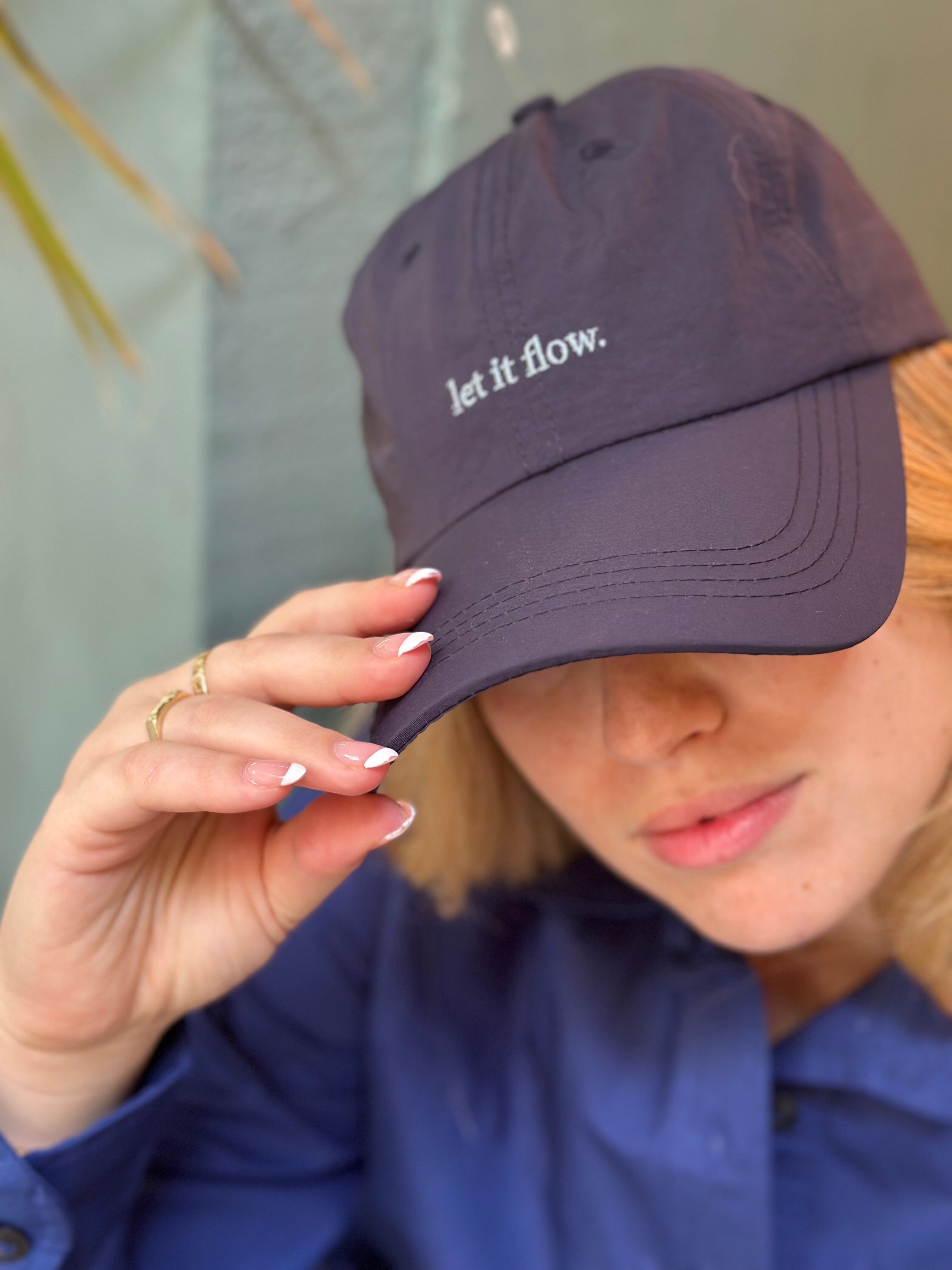 כובע נייבי מתכוונן, עם רקמה בצבע תכלת