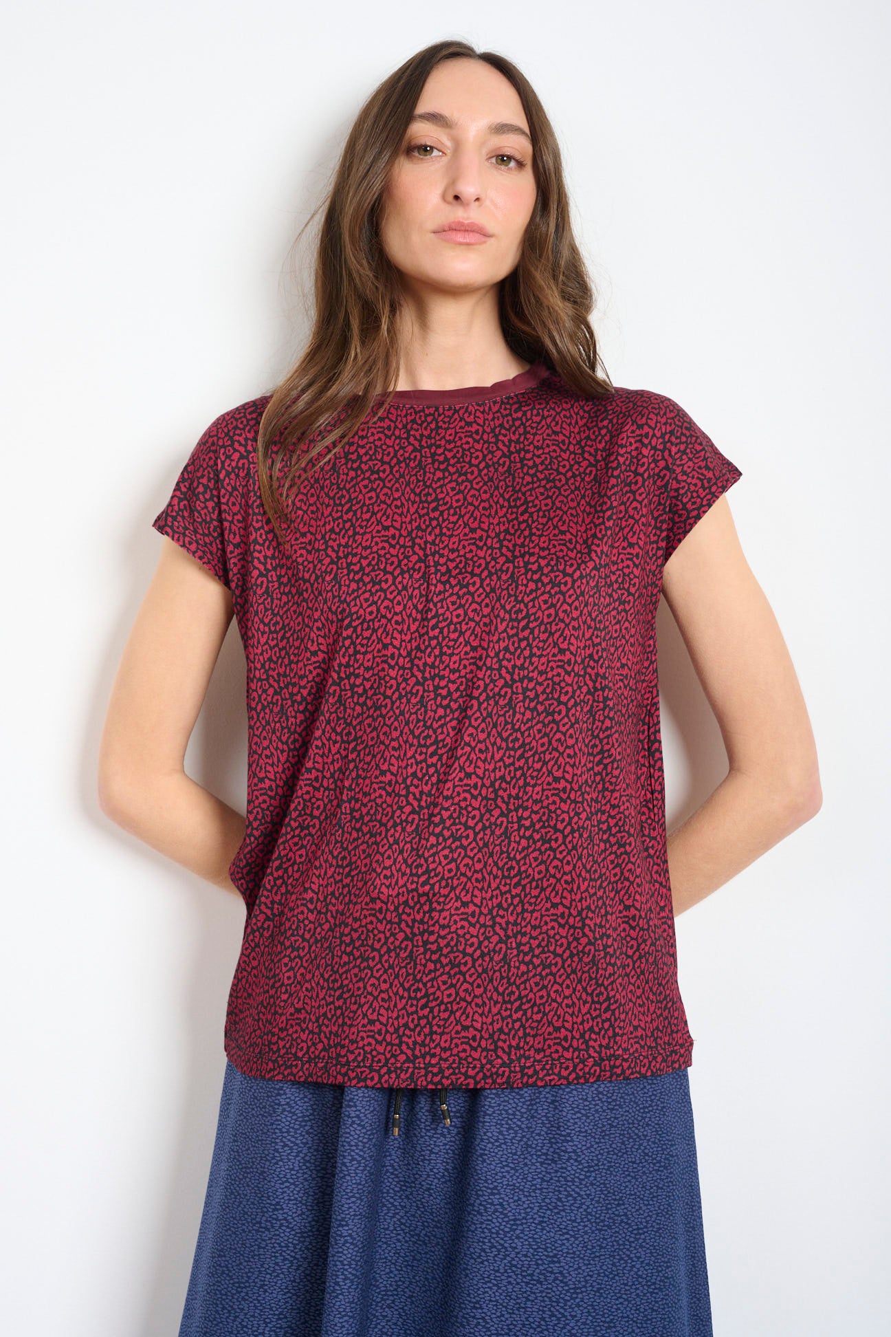 חולצת נשים במידות בגזרת רפויה ונינוחה, בדוגמה מנומרת שמרימה כל לוק יומיומי בלי מאמץ.