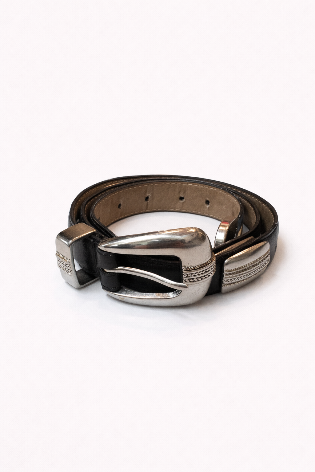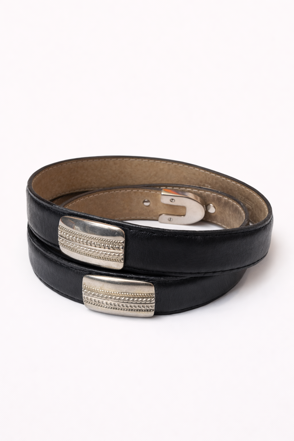 חגורת עור איכותית בצבע שחור, עם אבזמים מושלמים