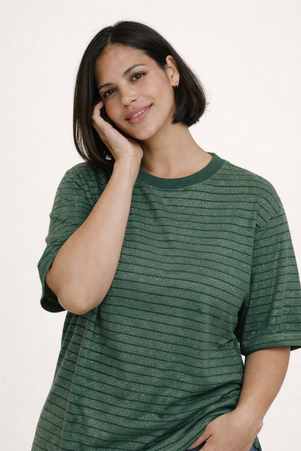 חולצת טנסי פסים ירוקים מנצנצים