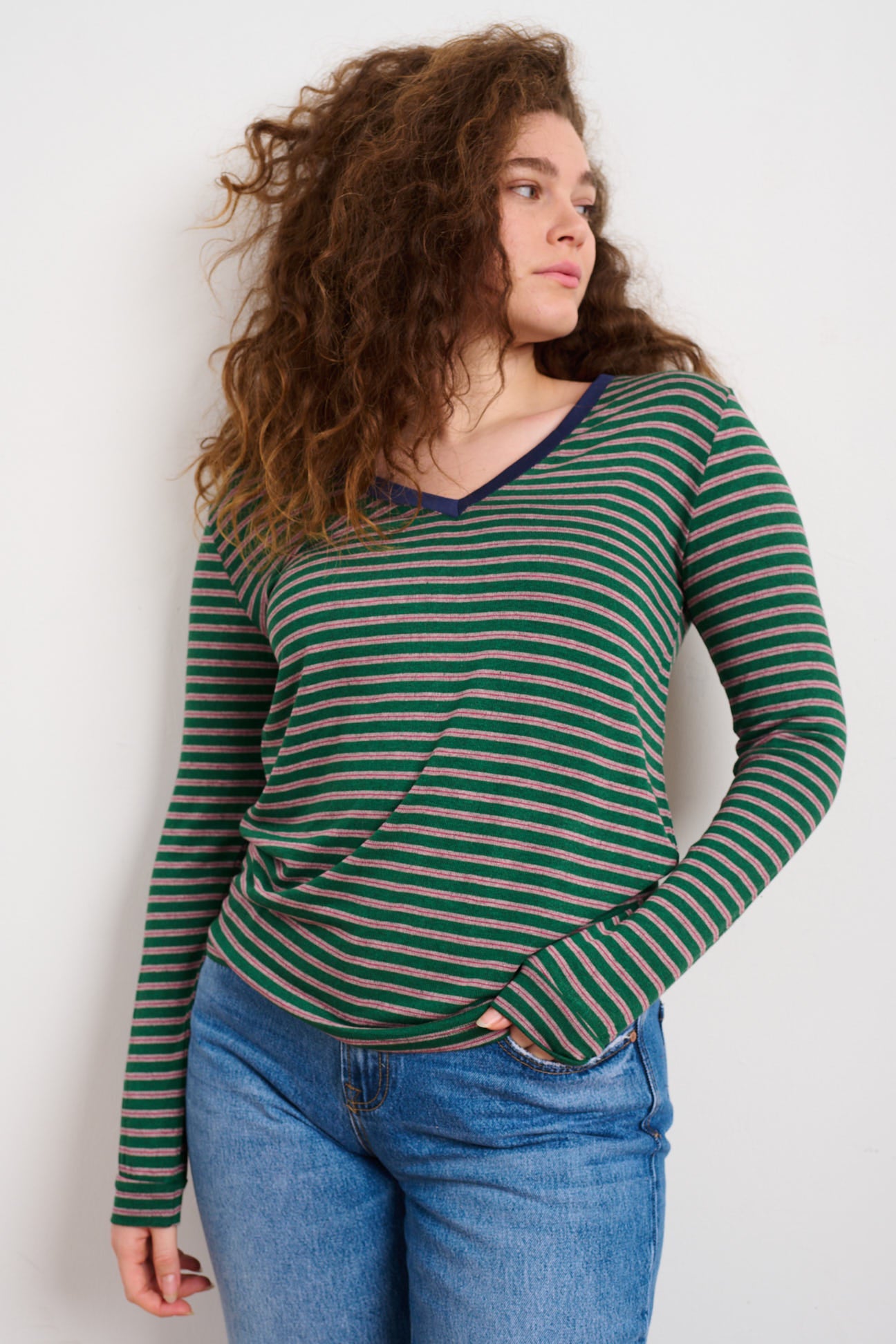 חולצת וי פסים לנשים-