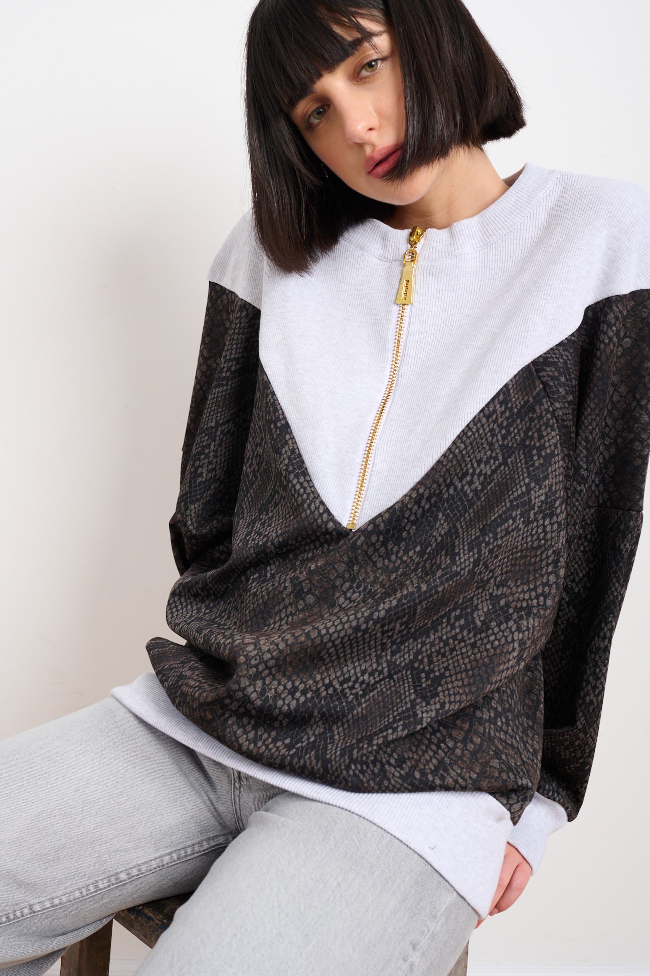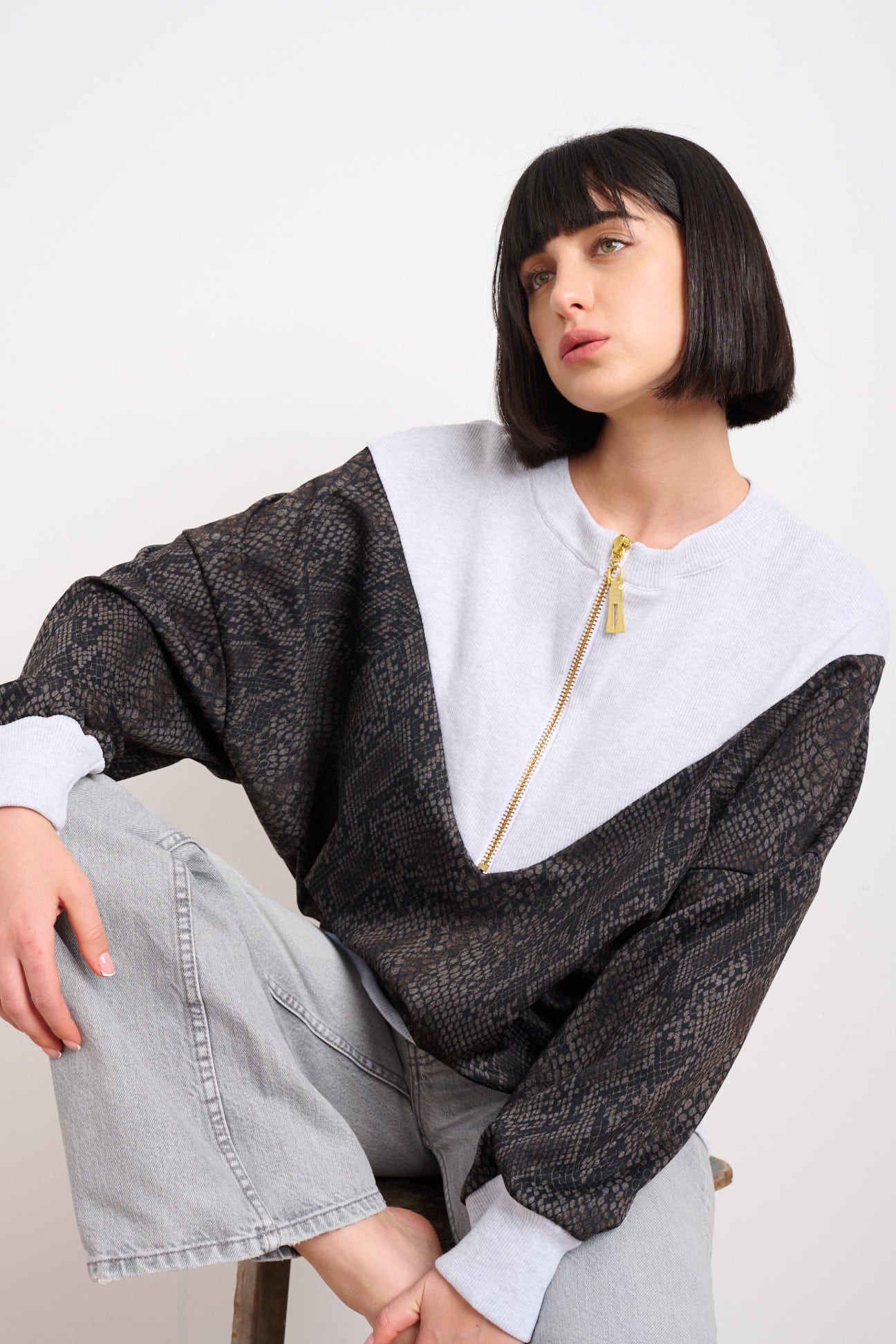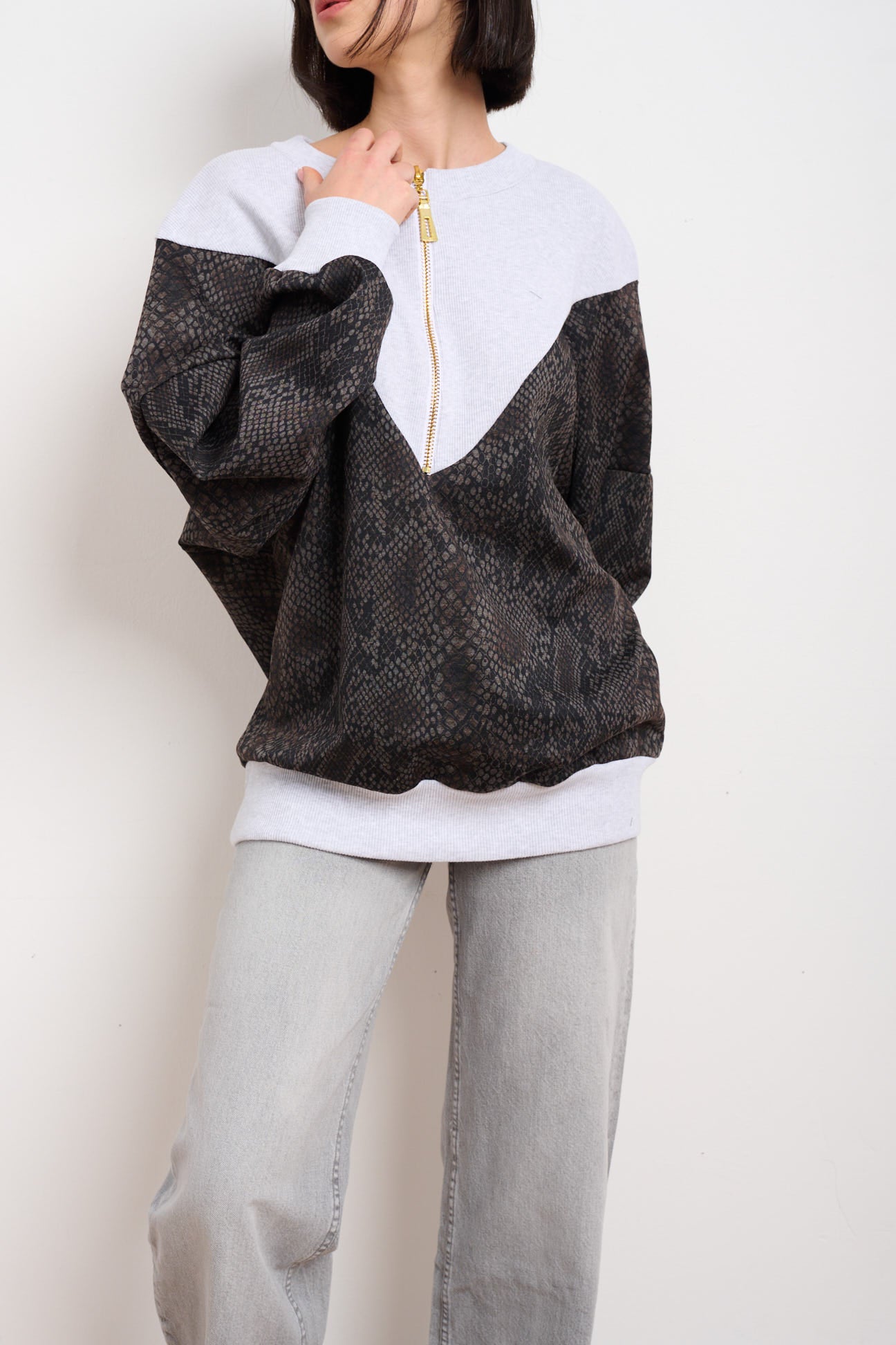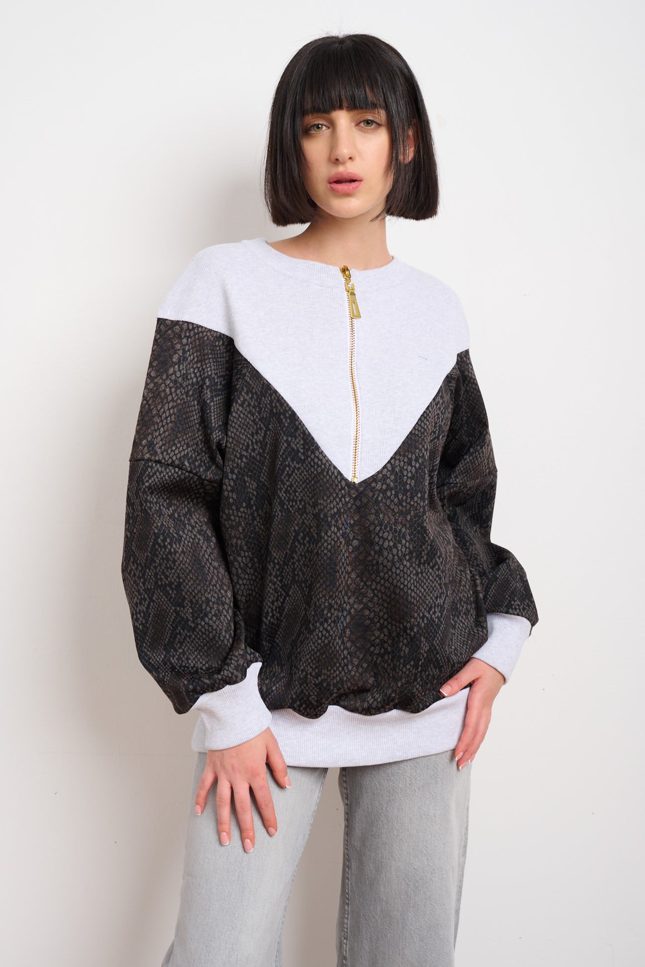 בד פוטר איכותי, חמים ונעים, גזרה ONE SIZE שמתאימה למידות 36–46, ורוכסן זהב שנותן טוויסט יוקרתי.