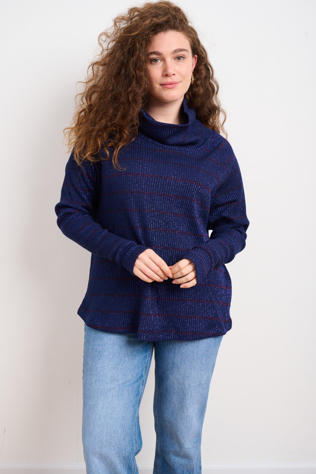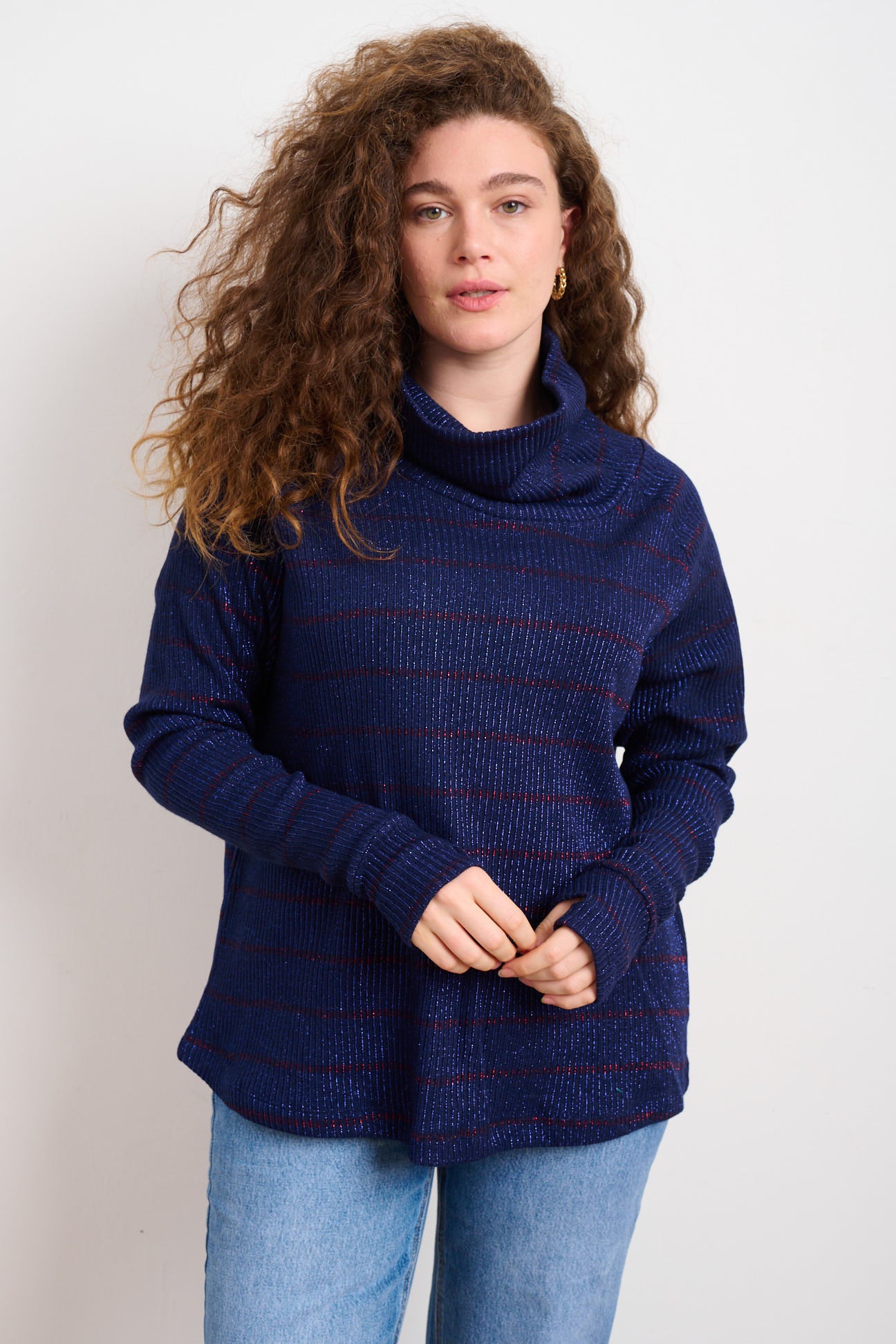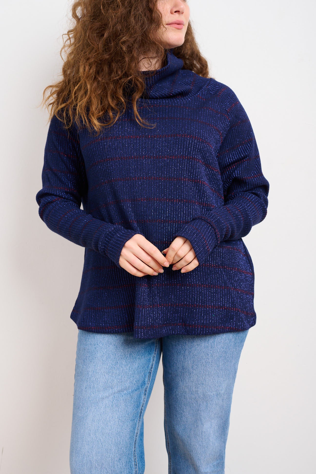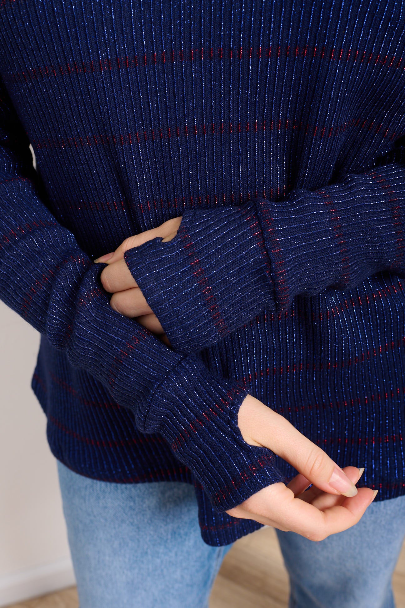 אמאלפי סריג נייבי פס אדום מנצנץ