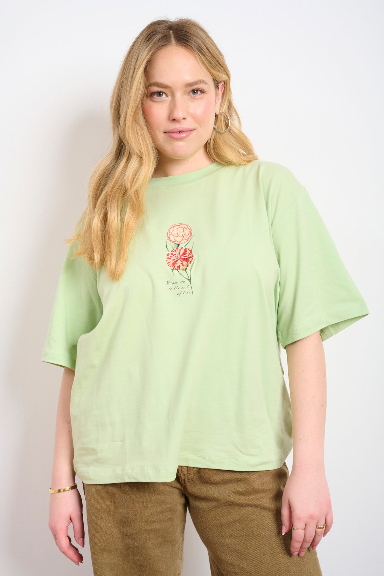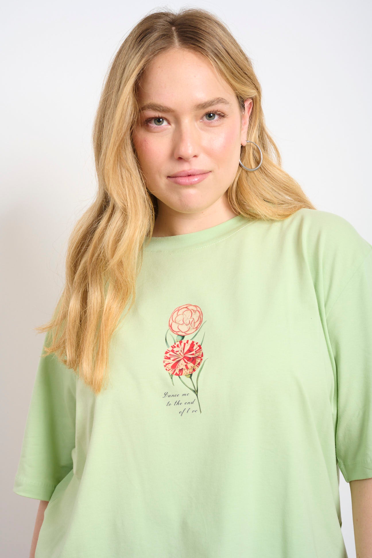 חולצת טי לנשים בירוק מנטה עם הדפס פרחוני מהמם.