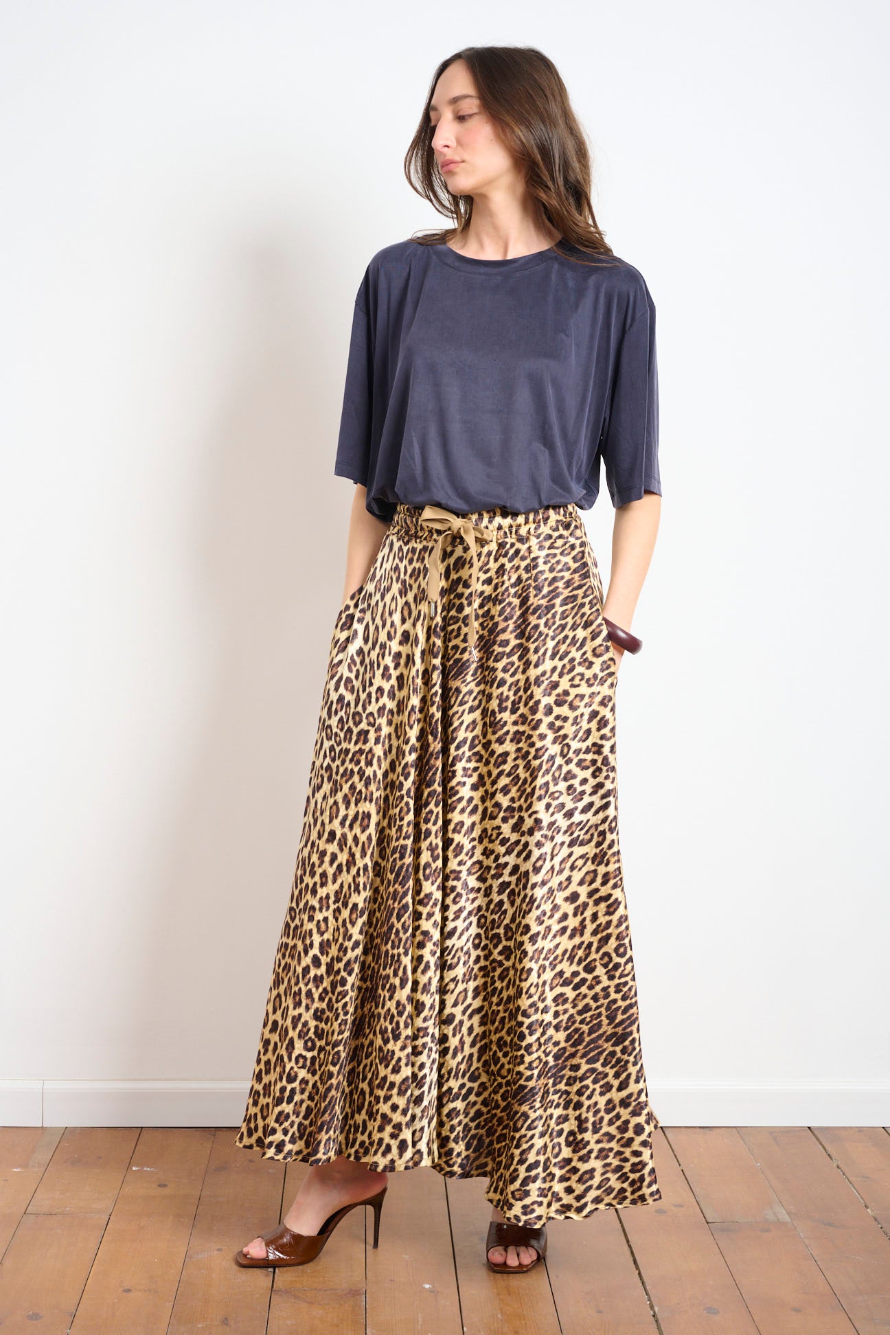 חצאית קלוש מקסי מתנפנפת עם כיסים וגומי נוח במותן, בגזרה מחמיאה שמלווה כל תנועה.