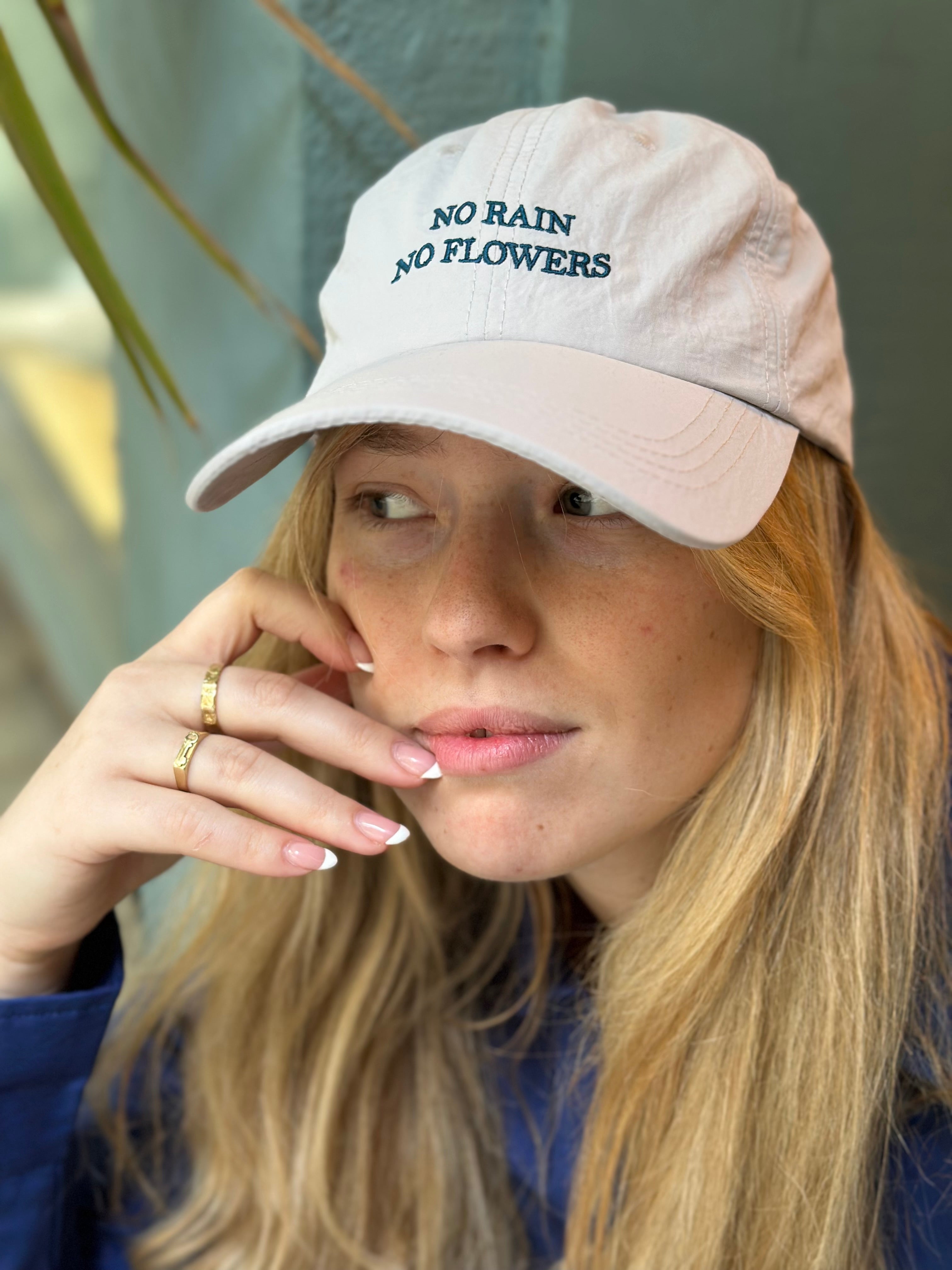כובע מצחיה רקמה no rain no flowers