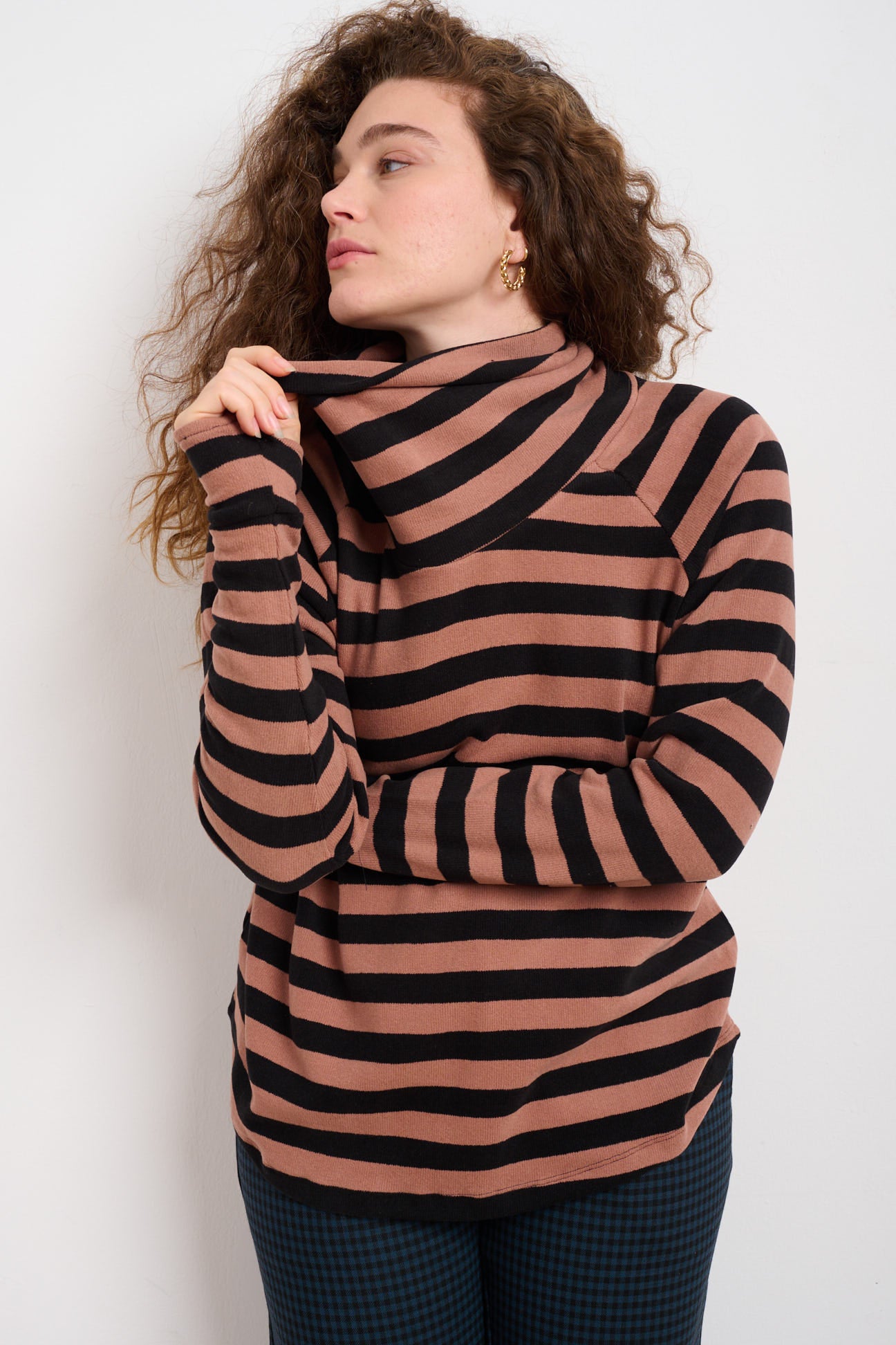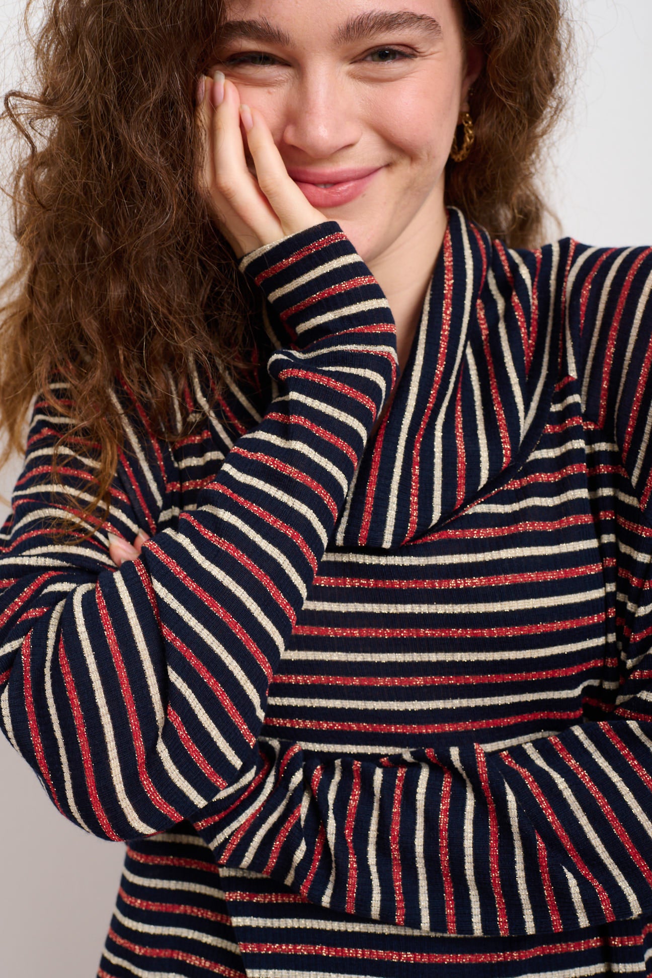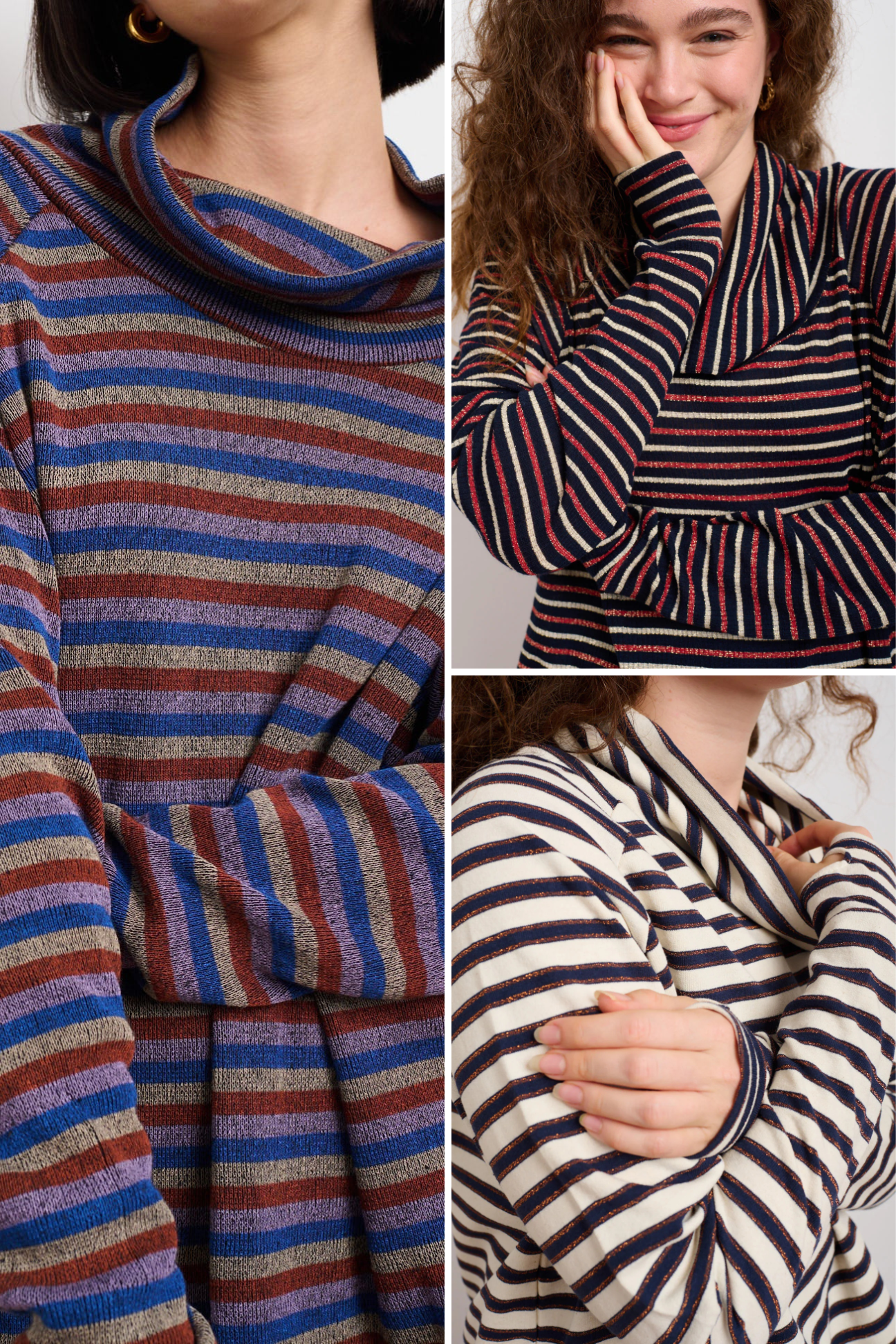 שלוש חולצות פסים עם צווארון נופל, גזרה רכה ונעימה, ועומס סטייל שמתחמם בדיוק בזמן לחורף.